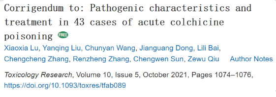1. 更正:43例急性秋水仙碱中毒的病原特征及治疗