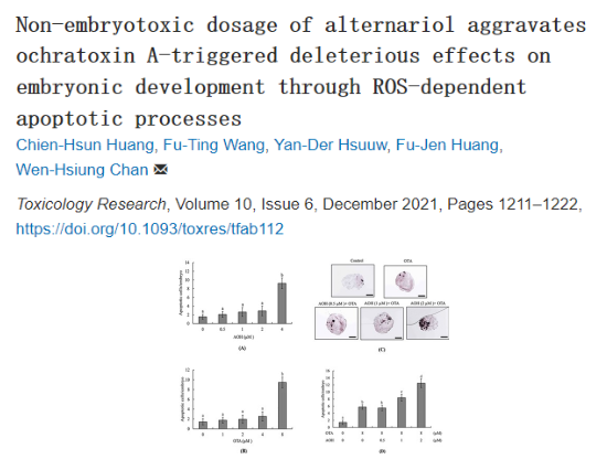 13. 非胚胎毒性剂量的链格孢霉通过 ROS 依赖的细胞凋亡诱导加重赭曲霉毒素 A 引发的对胚胎发育的有害效应