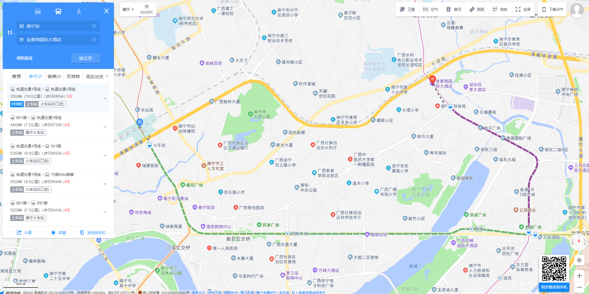 (2)由南宁火车东站前往南宁金紫荆国际大酒店