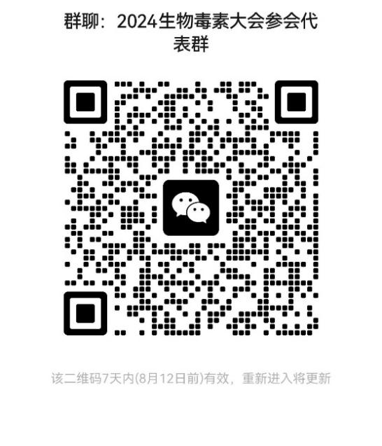 (6)请所有参会代表扫码加入“2024生物毒素大会参会代表群”(二维码如下),便于会议期间及时接收会议通知。入群时请备注“姓名+单位”,谢谢各位代表支持!