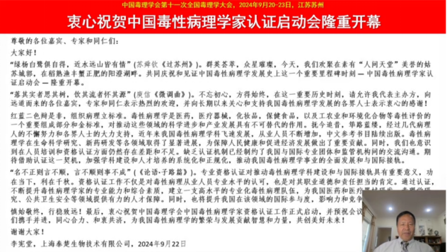 2024年9月22日,在苏州太湖国际会议中心召开的中国毒理学会第十一次全国毒理学大会上,“中国毒理学会中国毒性病理学家资质认证启动会”顺利举办。