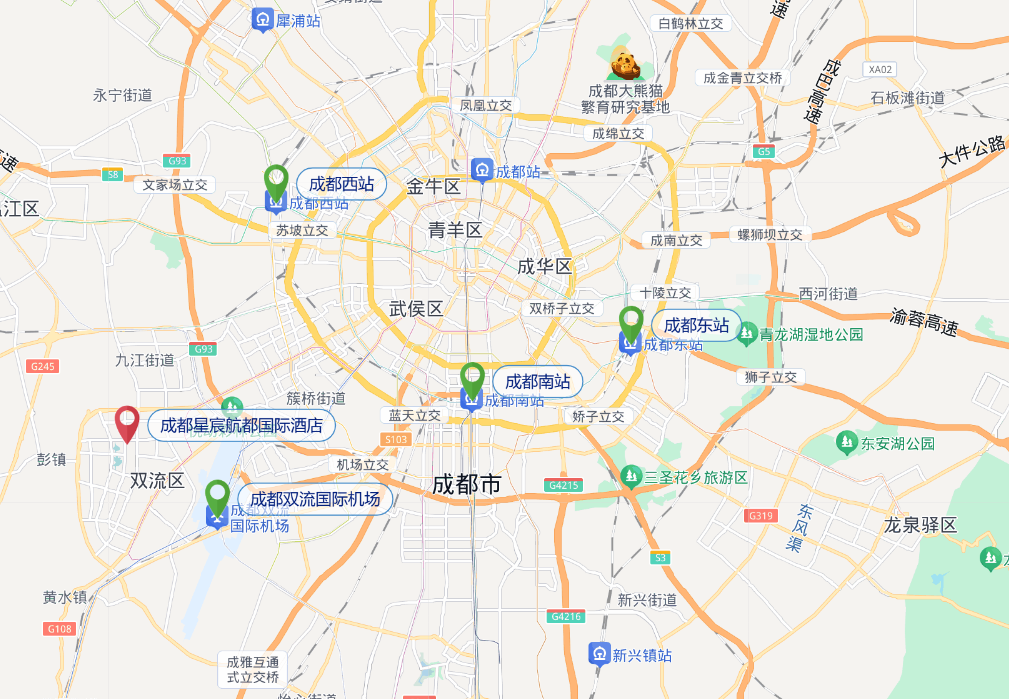 成都南站 -- 成都星宸航都国际酒店(约24公里)