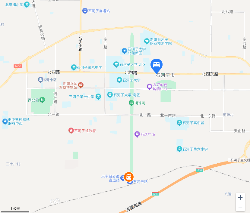 | 石河子恒和华星酒店 地址:石河子北四东路2号 电话:+86-993-7282888、+86-993-7282880 房价:标间/单间价格为299 元/天 交通: 石河子大学:距离1.7 km,驾车5 min 花园机场:距离20 km,驾车约28 min 地窝堡机场:距离140 km,驾车约100 min 石河子站:距离5 km,驾车约13 min |
