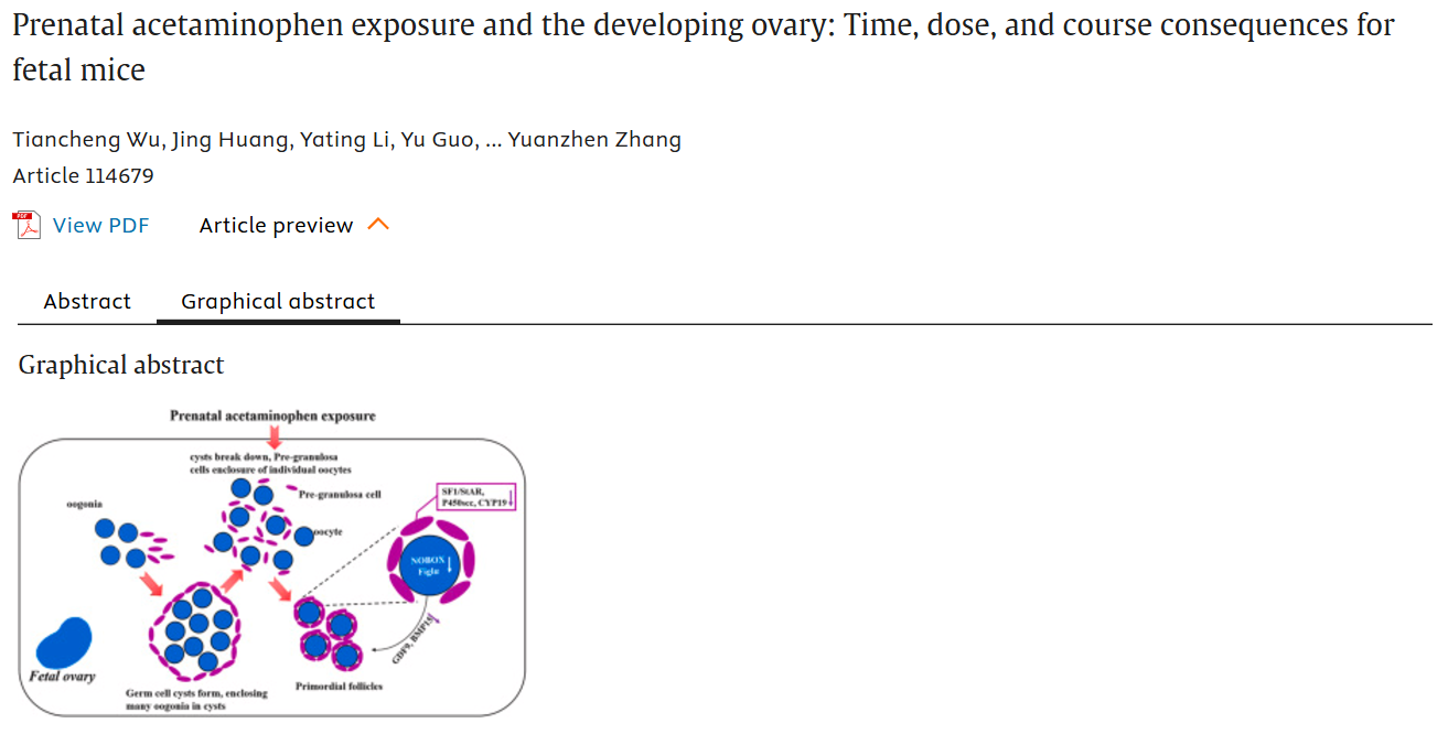 概述:建立不同窗口(妊娠中期和妊娠晚期)、不同剂量(低、中、高)和不同模式(单次或多次)产前对乙酰氨基酚(PAcE)暴露的小鼠模型,揭示PAcE对胎儿卵巢发育的毒性作用。
