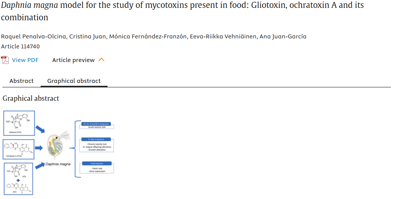 概述:根据OECD202和211指南构建大溞模型测试胶粘毒素和赭曲霉素A的毒性作用,结果显示两种毒素对人类健康可能构成威胁。