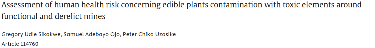 概述:检测废弃矿山周边油棕、、椰子、菠萝、腰果、芒果、香蕉和木瓜的 Cr、Pb、Hg、As、Cd 和 Ni 浓度,以确定矿山周边食用植物的致癌和非致癌人类健康风险。