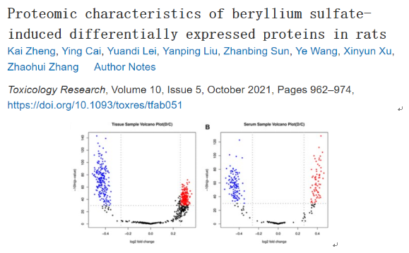 1. 硫酸铍诱导大鼠差异表达蛋白的蛋白质组学特征