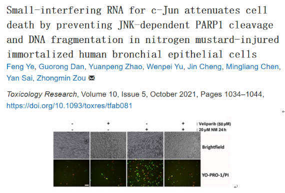 8. 小干扰RNA靶向c-Jun通过阻止氮芥损伤的永生化人支气管上皮细胞中JNK依赖性PARP1分解和DNA断裂来降低细胞死亡