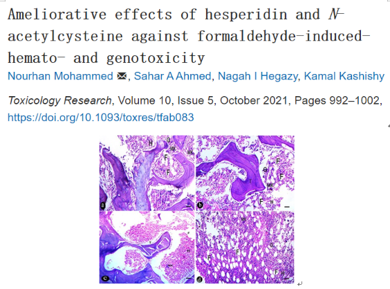 4. 橙皮苷和N-乙酰半胱氨酸对甲醛诱导血液和遗传毒性的缓解作用