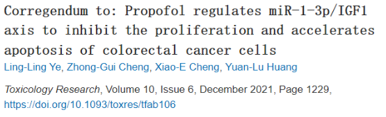 2. 更正:丙泊酚通过调节miR-1-3p/IGF1轴抑制结直肠癌细胞增殖并加速其凋亡