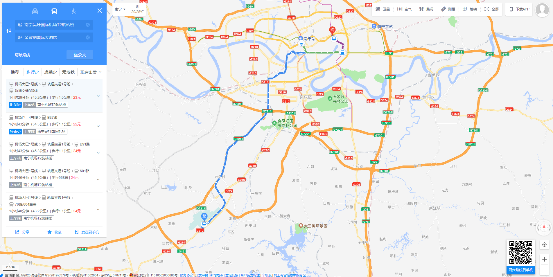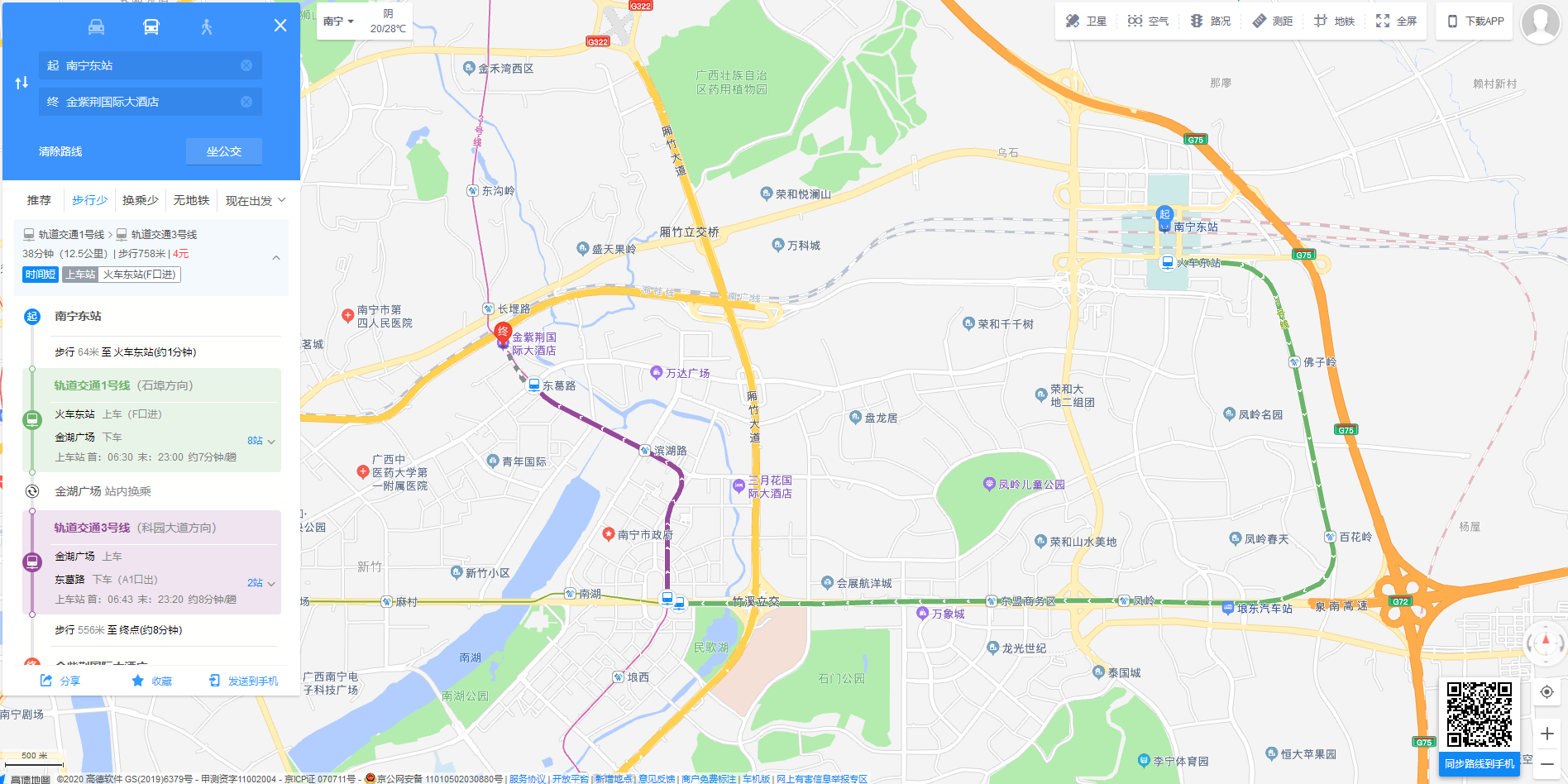 (2)由南宁火车东站前往南宁金紫荆国际大酒店