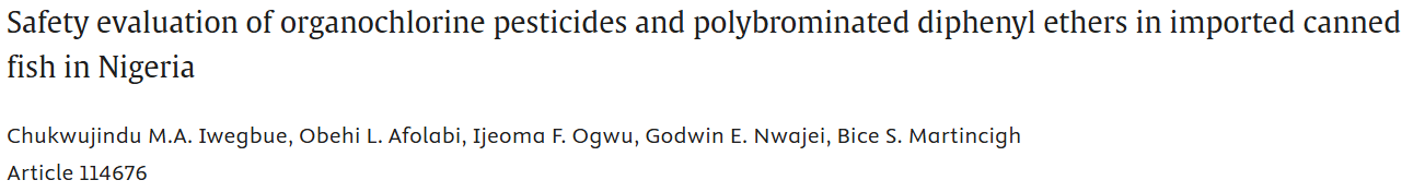 概述:检测尼日利亚市售进口鱼罐头中有机氯农药和多溴联苯醚的浓度,以确定其对人体的潜在威胁,结果显示当地居民的日常膳食摄入不会产生不良风险。