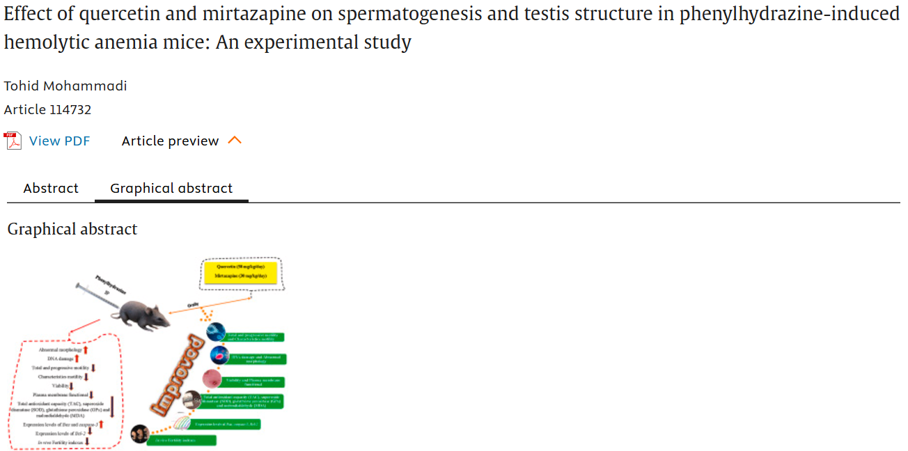 概述:苯肼可诱导小鼠发生溶血性贫血,并损伤生殖系统功能。槲皮素和米氮平可改善小鼠的精子发生和激素稳态,从而缓解溶血性贫血小鼠的生殖功能障碍。