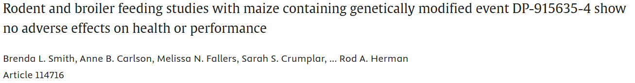 概述:对DP - 915635 - 4转基因玉米进行90天大鼠喂养实验和肉鸡实验,结果显示其与普通谷物的安全性与营养性相似,不存在不良反应。