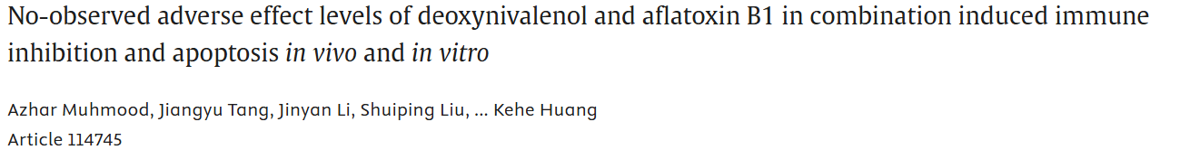 概述:分别构建体内体外实验发现,脱氧雪腐镰刀菌烯醇和黄曲霉毒素B1的NOAEL水平的联合暴露可抑制免疫功能并诱导细胞凋亡。