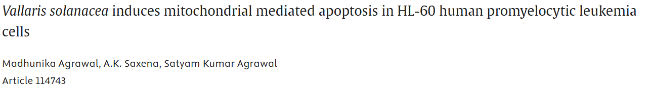 概述:在HL - 60人早幼粒白血病细胞中探讨了纽子花酒精提取物的抗增殖和凋亡潜力,发现其可通过损害线粒体诱导细胞凋亡。