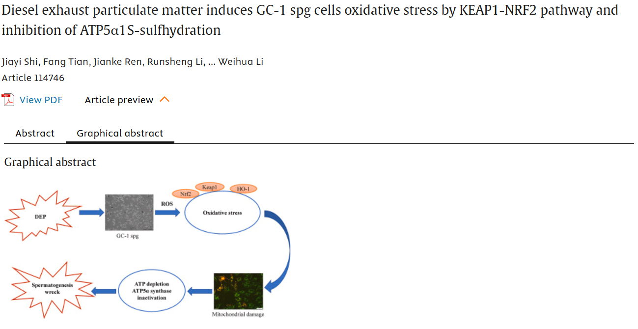 概述:本研究探讨了柴油机尾气颗粒物(DEP)对GC - 1 spg细胞毒性作用的潜在机制,揭示DEP可通过激活KEAP1 - NRF2和抑制ATP5 α 1S -巯基化诱导GC - 1 spg细胞氧化应激。