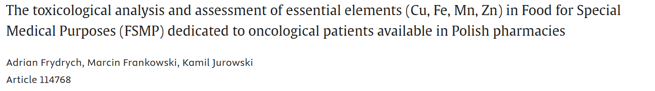 概述:使用ICP-MS对波兰市售肿瘤患者专用FSMP中的必需元素进行综合毒理学和营养安全性分析,强调了药房配发的FSMP的标准化方案的必要性。