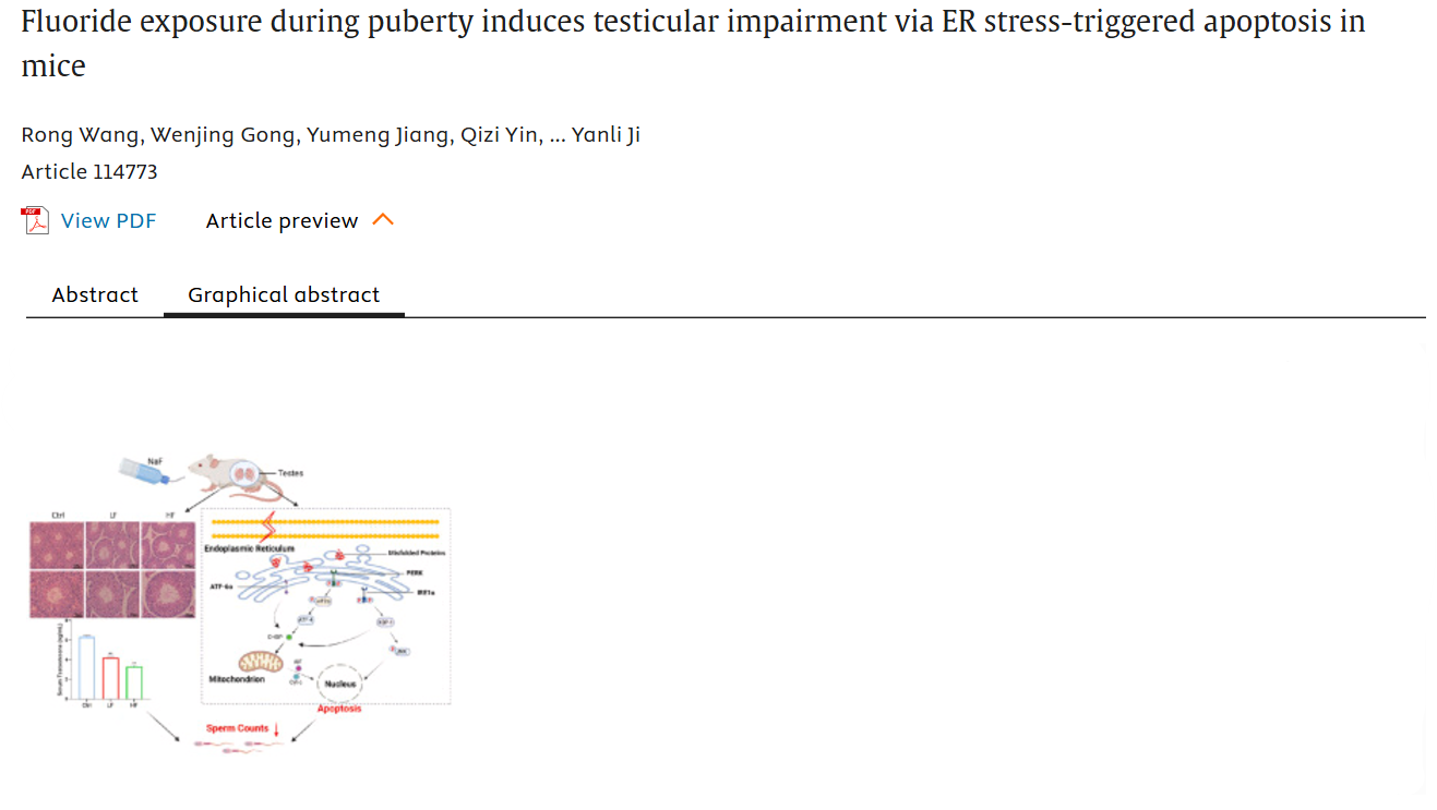 概述:在小鼠中发现,青春期氟暴露可激活睾丸细胞内质网应激,损害睾丸发育并降低精子数量,从而诱导睾丸毒性。