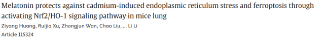 概述:褪黑素通过激活Nrf2/HO-1信号通路,减轻氧化应激,抑制内质网应激和铁死亡,从而缓解镉引起的肺损伤。