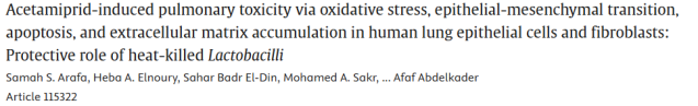 概述:本研究揭示了啶虫脒(ACE)通过氧化应激等机制诱导人源肺上皮/成纤维细胞毒性的分子基础,并证实热灭活乳酸菌可有效缓解ACE引发的肺上皮损伤与纤维化。